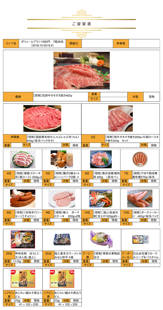 バラエティ―プラン バラエティプラン1500円7組28名 1 ファイル 2.11 MB ダウンロード プレミアムプラン プレミアムプラン1500円7組28名 1 ファイル 1.41 MB ダウンロード ボリュームプラン ボリュームプラン1500円7組28名 1 ファイル 1.80 MB ダウンロード